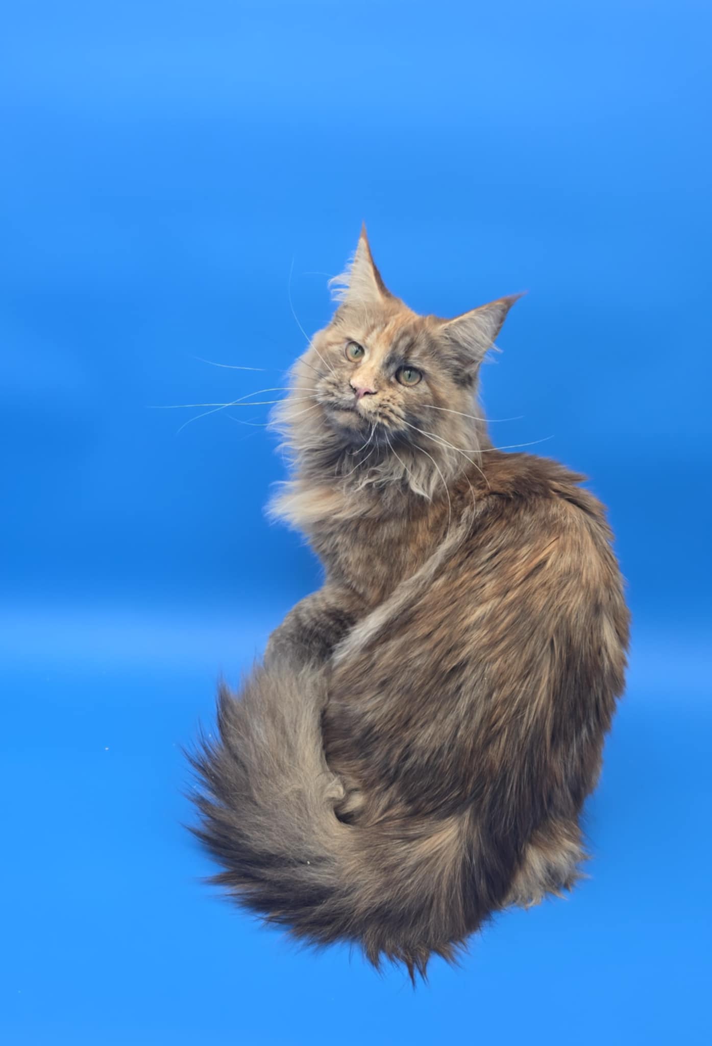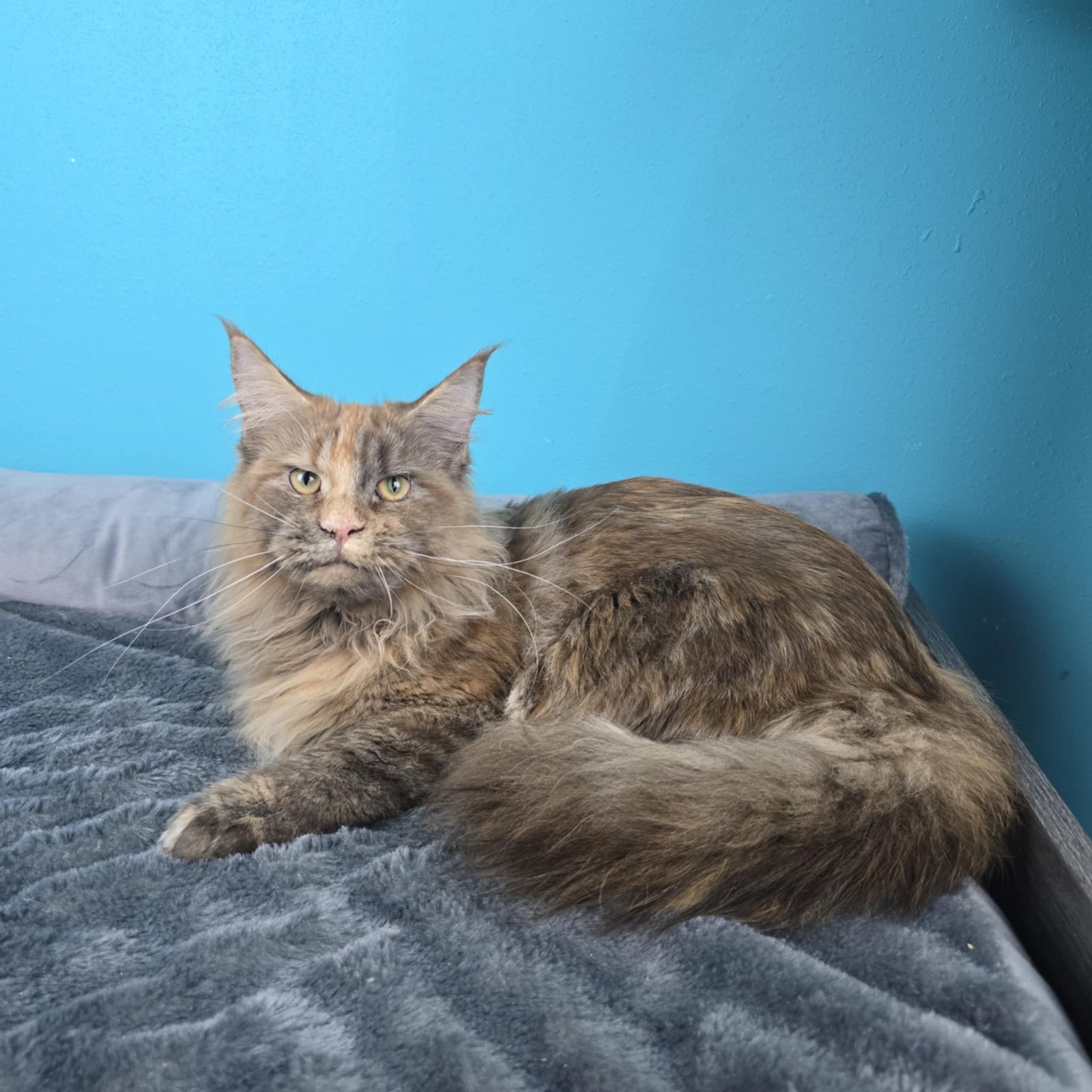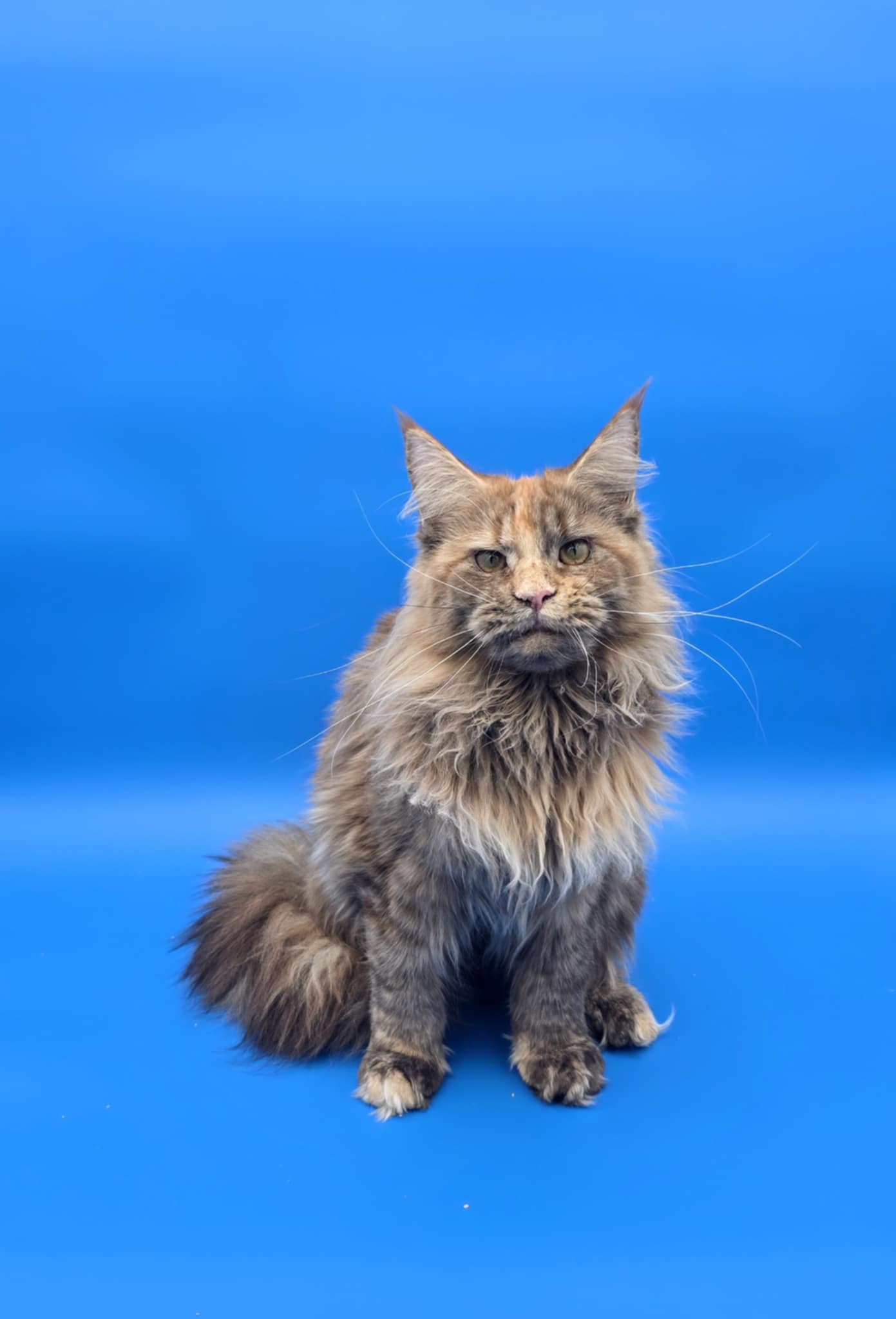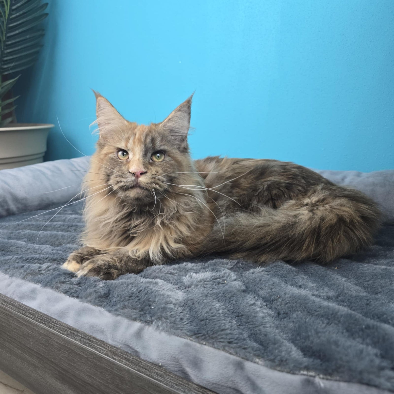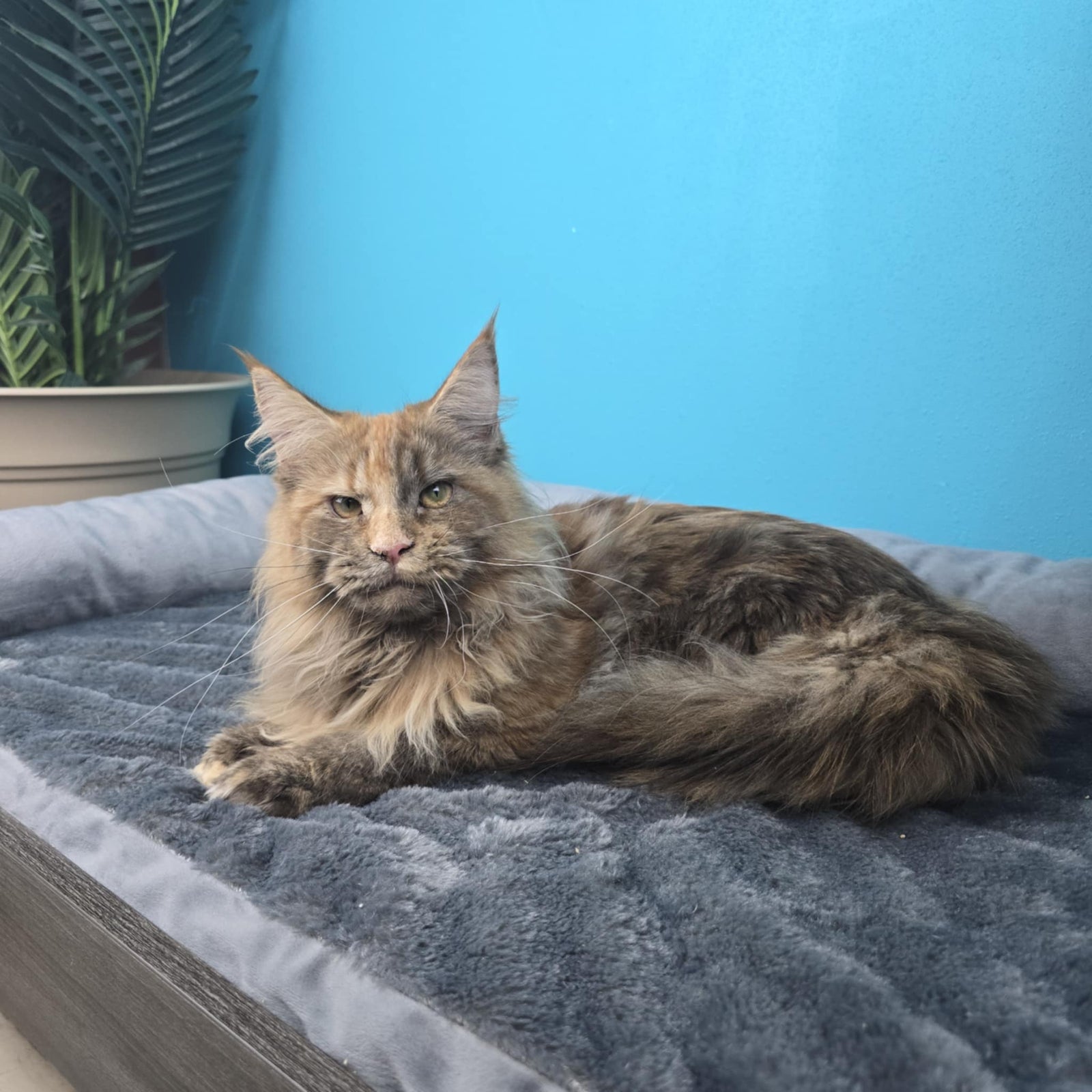 Queen Amelia was imported from Russia. She's a rare Phoenix Tortie color. Her papered name is Ameila Lions Paradise of NWCoonies. She was born on May 28th, 2024.