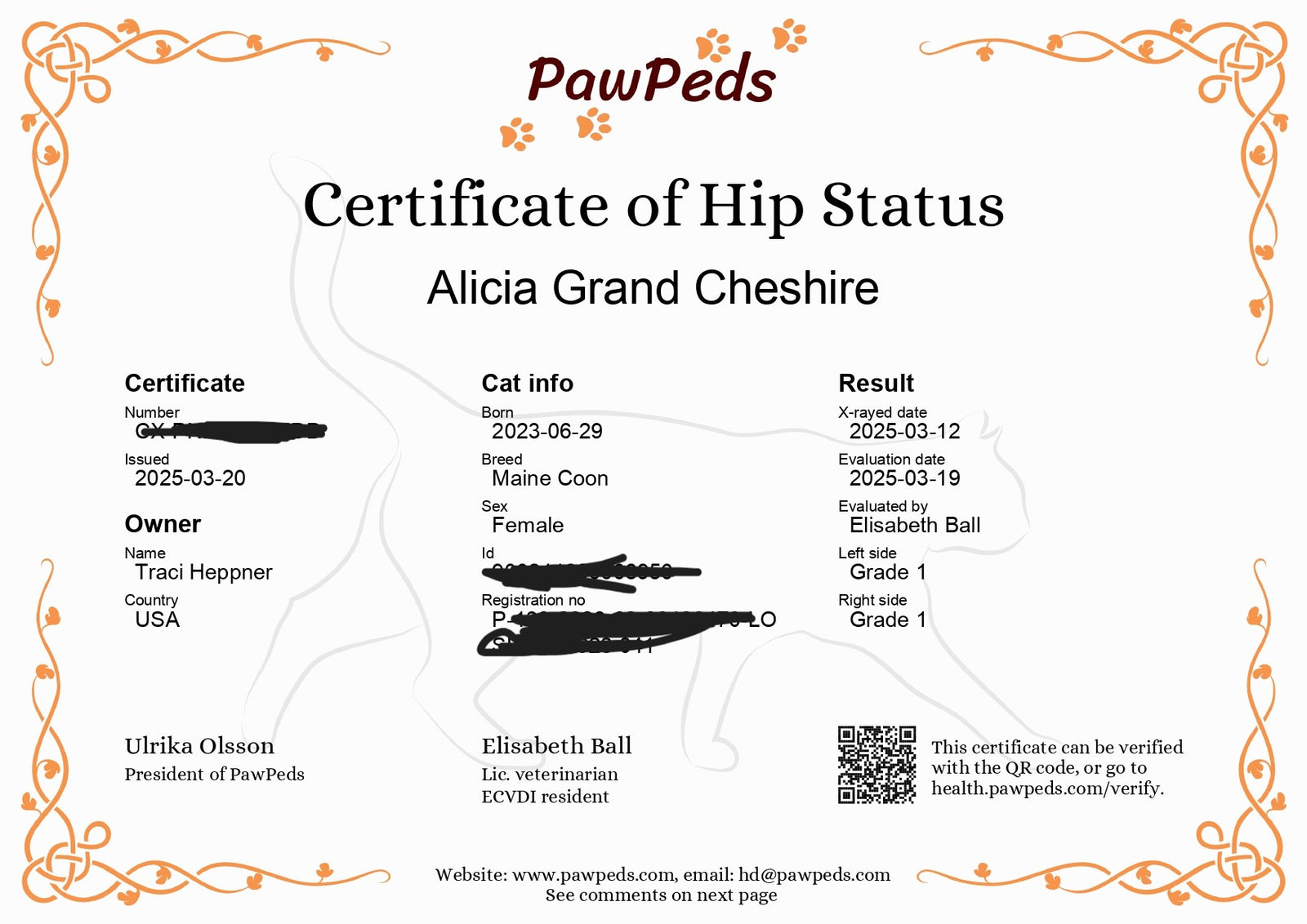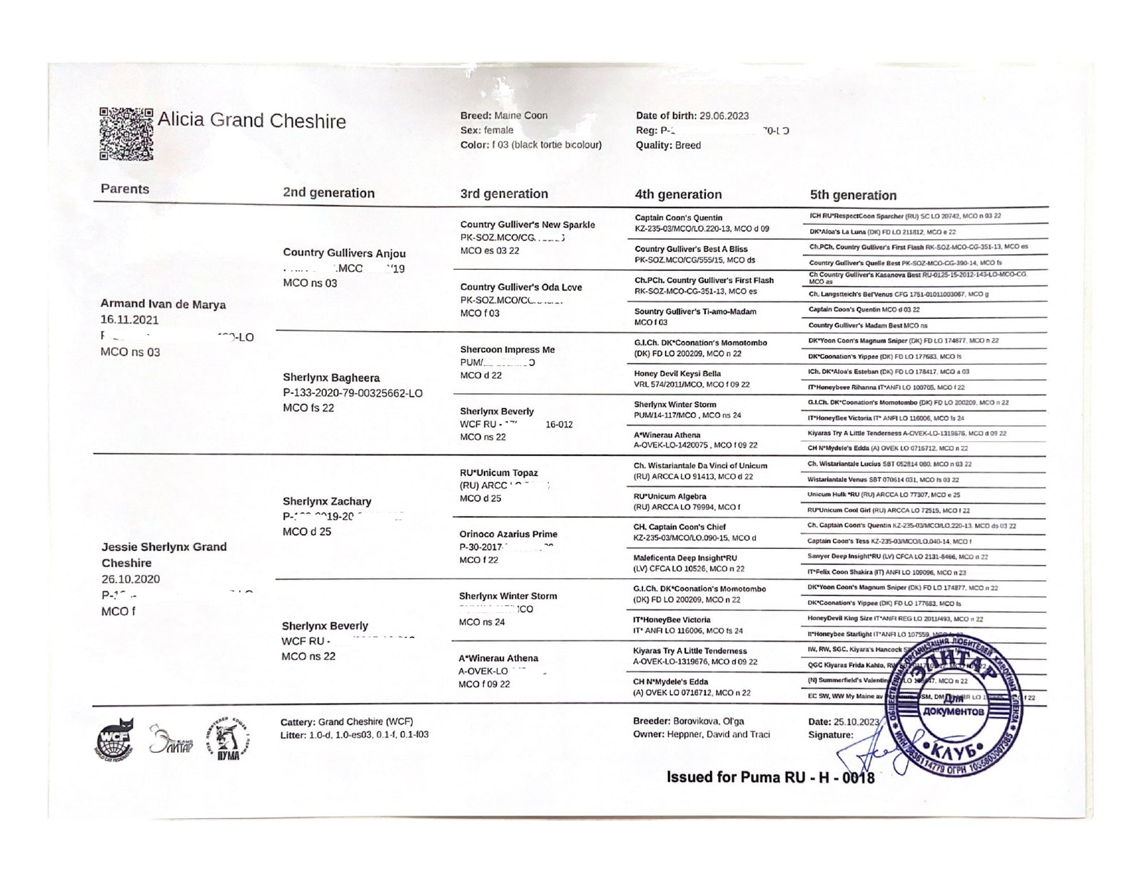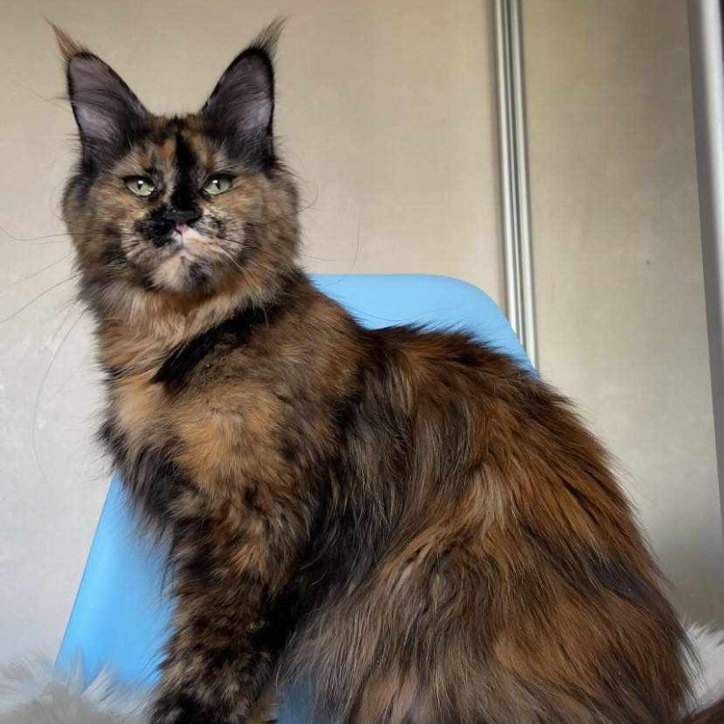 Bellatrix was imported from Russia. Her DOB is 6/29/2023. She's a Black Tortie with White. Her papered name is Alicia Grand Cheshire.