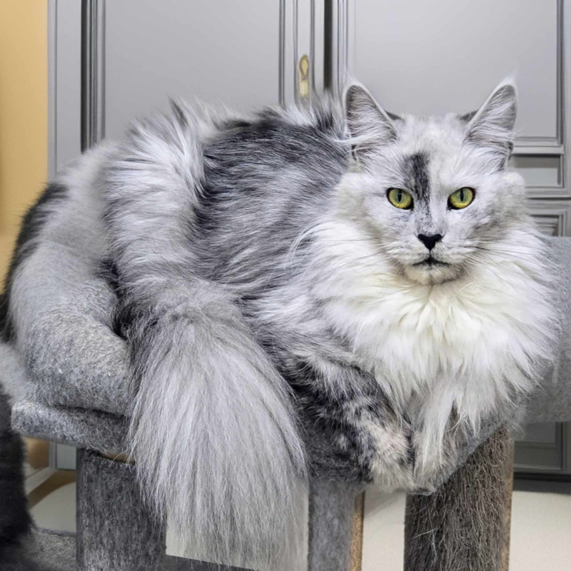 Queen Chardonnay was born in our cattery on February 11th, 2024. She's a black silver shaded tabby. Her papered name is NW Coonies Chardonnay. Her sister/littermate is NW Coonies Riesling.