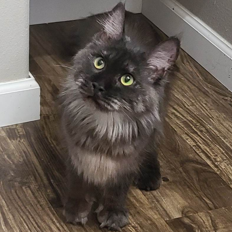 Dahlia was born in our cattery on 1/23/23. She's a solid blue. She's got a more independent personality but will let me pet her on her own terms. Both of her parents are still in my breeding program.