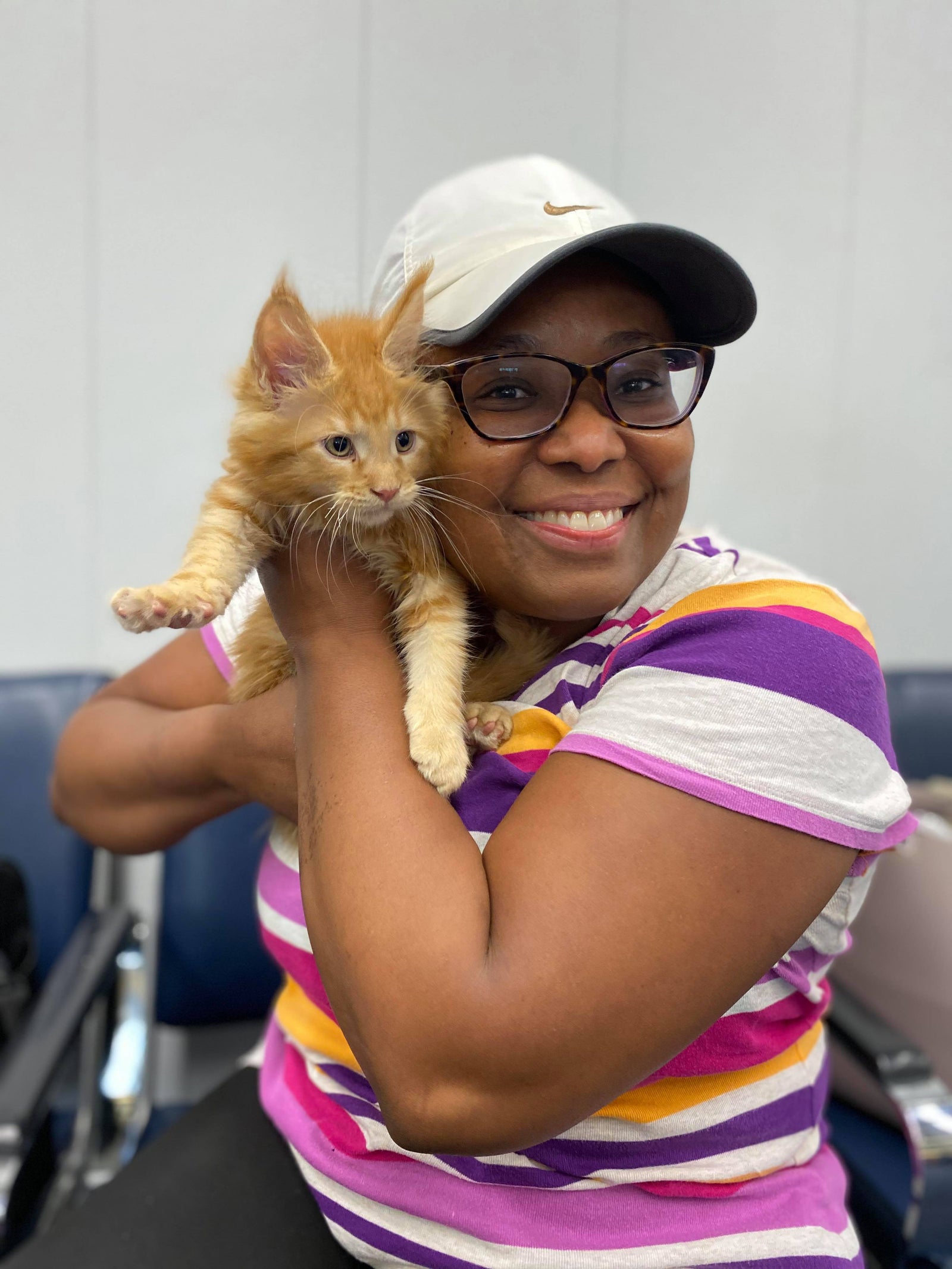 You can fly into PDX and my courier will meet you there with your kitten for $100, and you can fly back with your kitten in cabin. You will need to bring your own airline approved carrier or purchase one from us ahead of time.