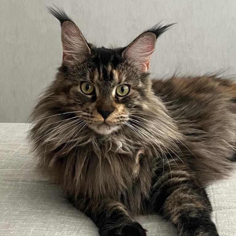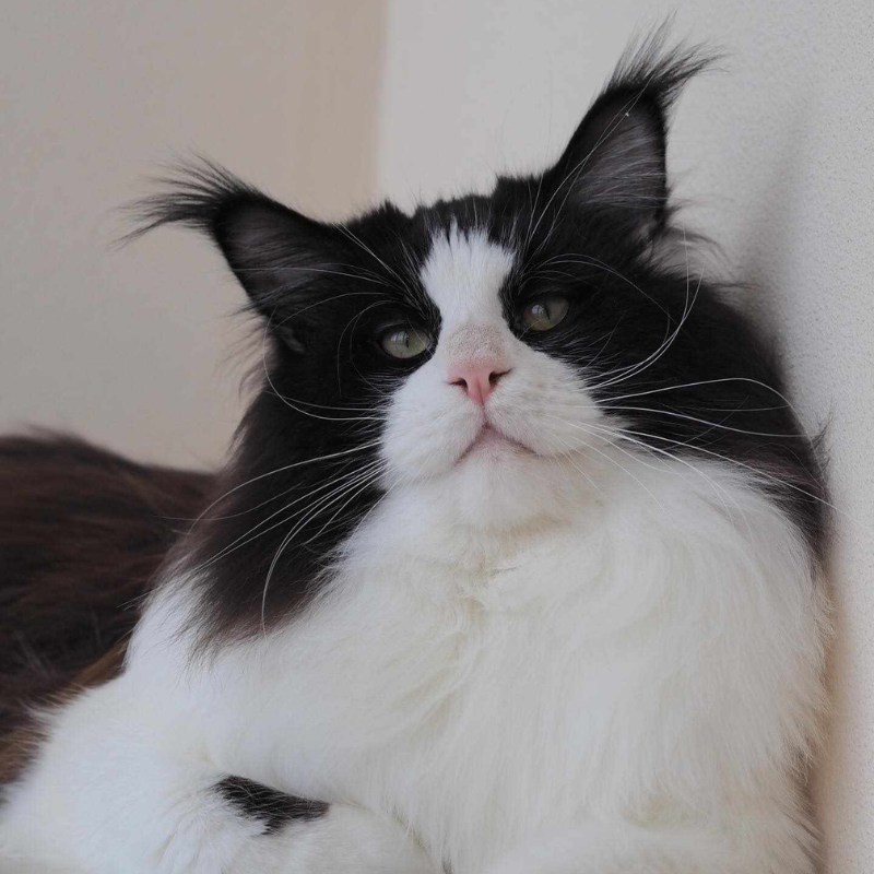 Hermione was imported from Russia! Her DOB is 6/13/2023. She's a Black/White Bi-Colored Polydactyl (6,6,6,6). Her papered name is Hermione Nikira Light. She's got an amazing coat and her ear tassels are AMAZING! We can't wait to have her become Queen of our Cattery!