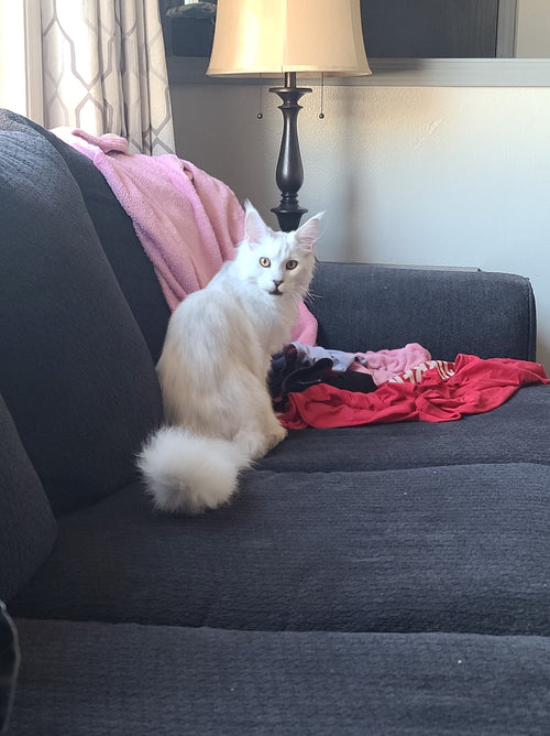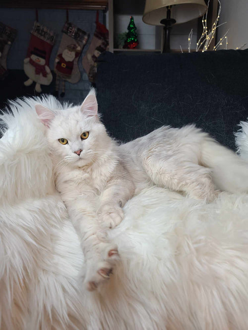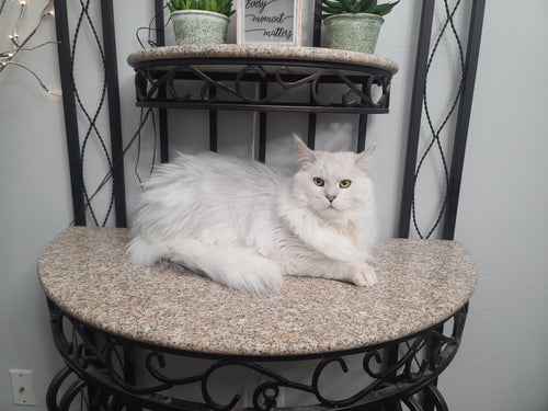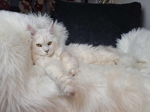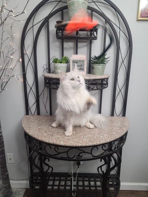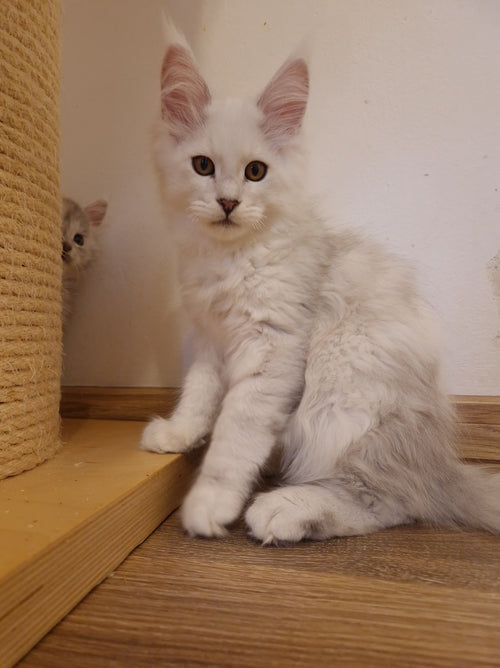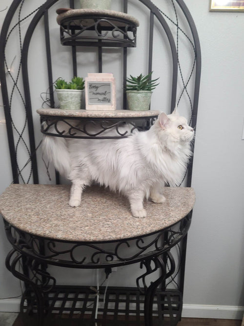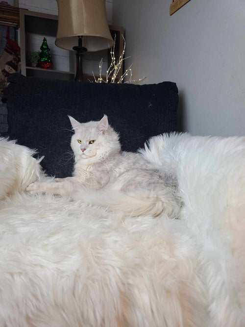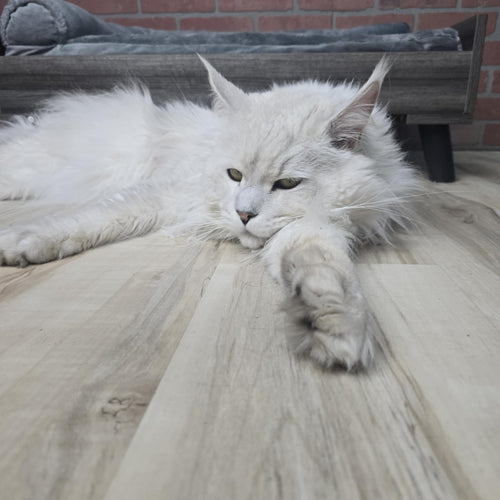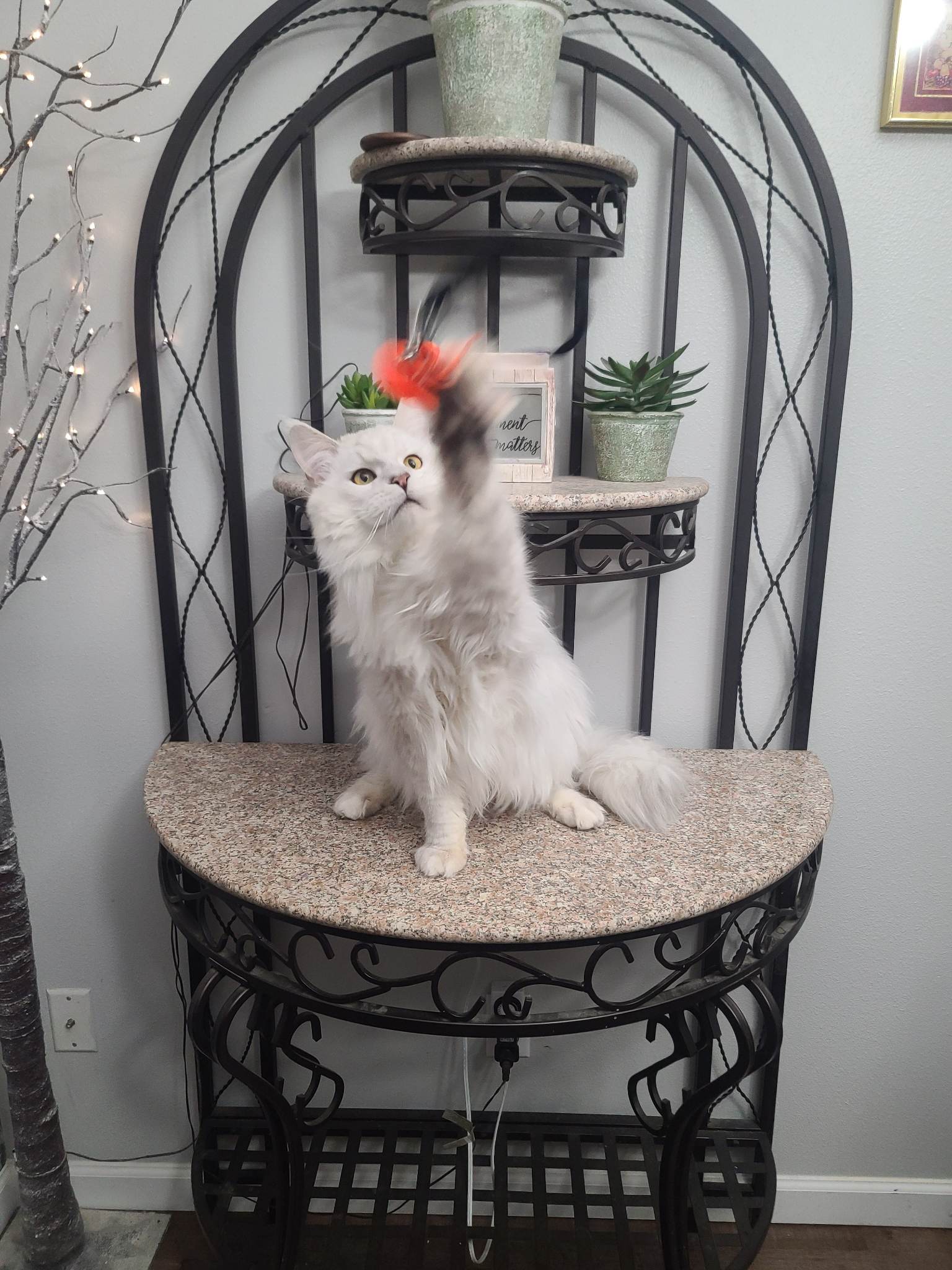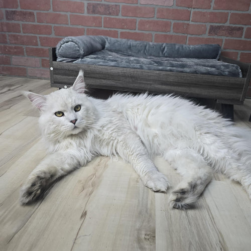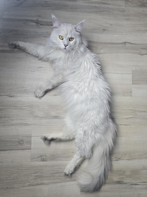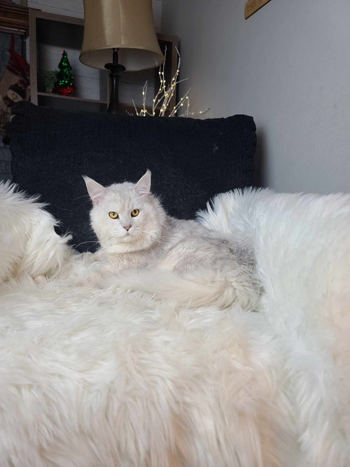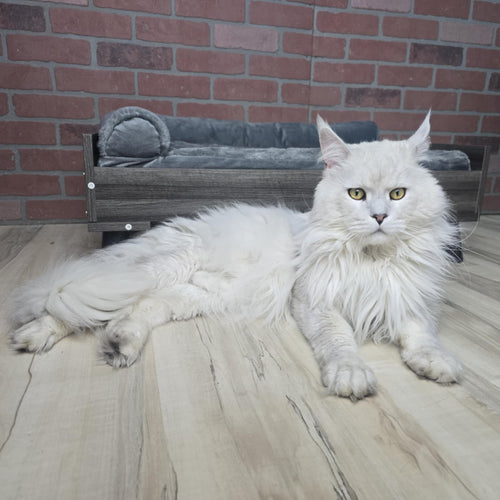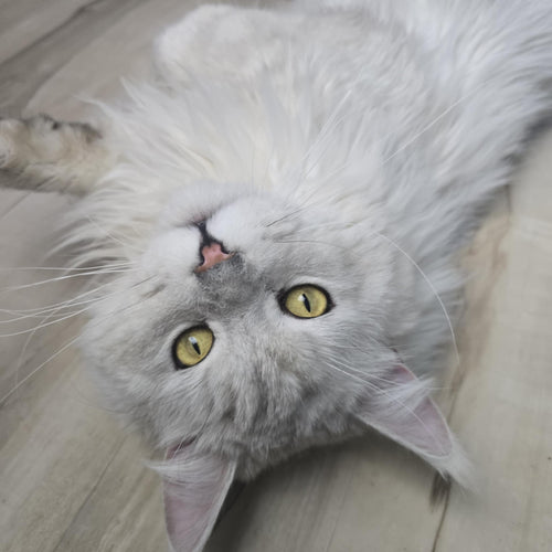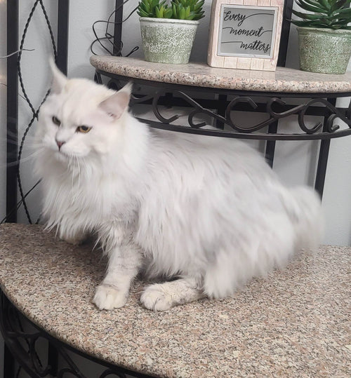 King Odin came to us from Romania. He's such a sweet loveable guy with the best temperament. He is a Black Silver Shell (Chinchilla) boy. His DOB is 3/10/2022 and his papered name is Oracol Odin of NW Coonies.