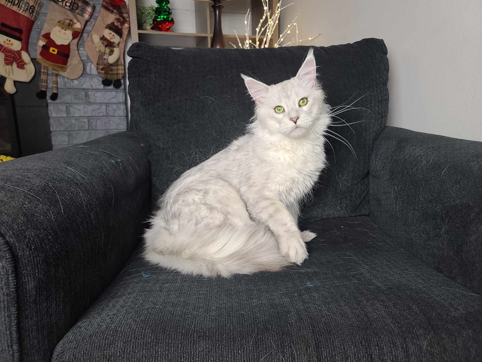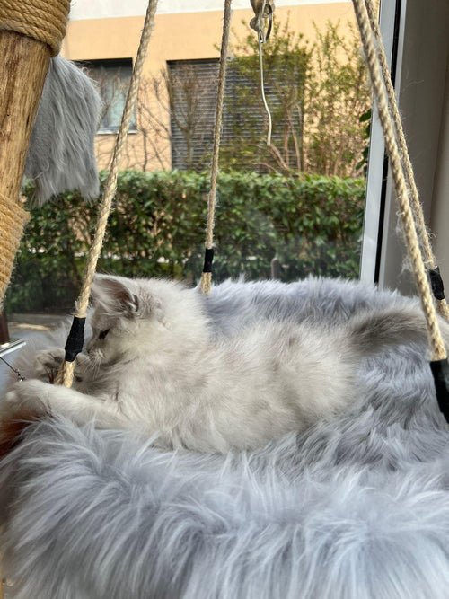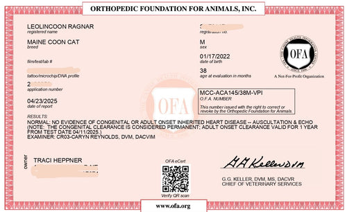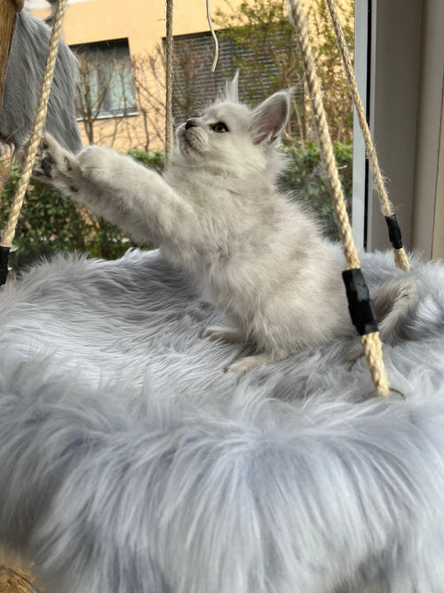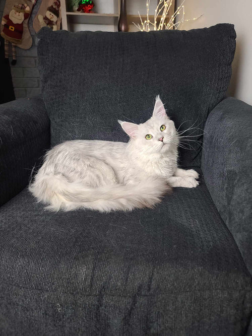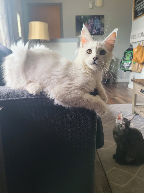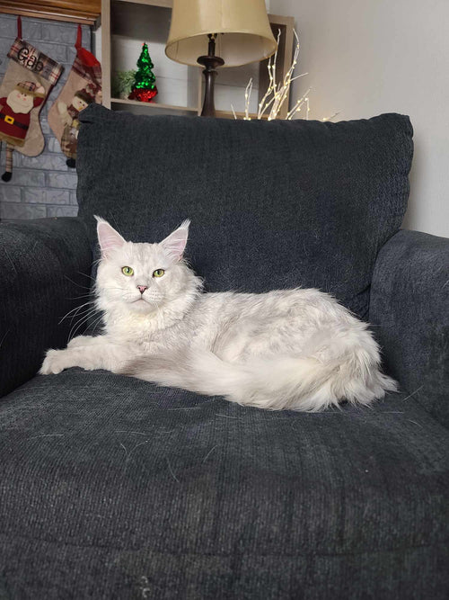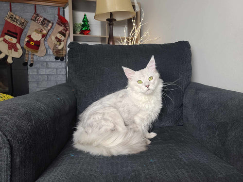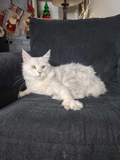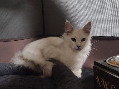 King Ragnar came to us from Austria. He was our first Black Silver Shell/Chinchilla boy! He is breathtakingly handsome, and such a playful guy! His papered name is LeolinCoon Ragnar. His DOB is 1/23/2023.