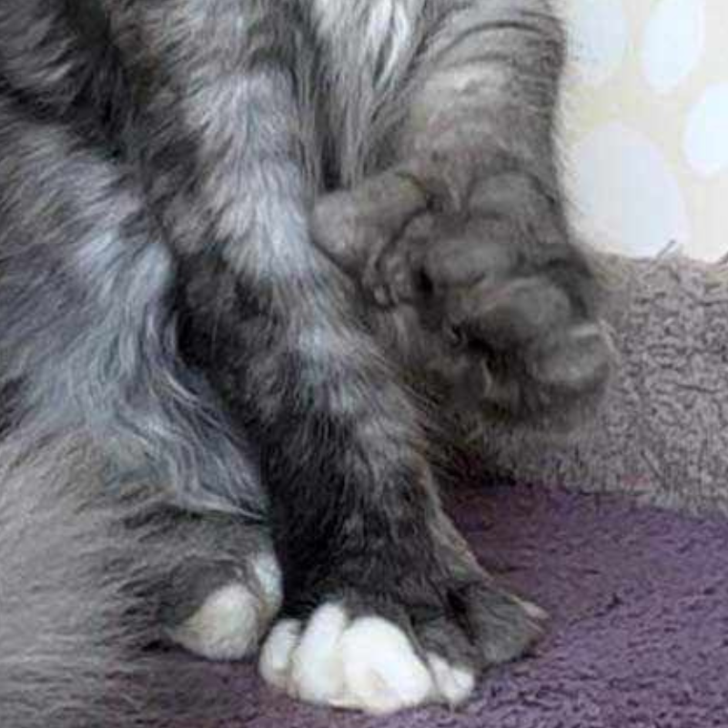 Normally kittens have 5 toes in the front and 4 in the back. Polydactyl (Poly) Kittens have extra toes! Those BIG feet can have between 5-7 toes on each paw pad!